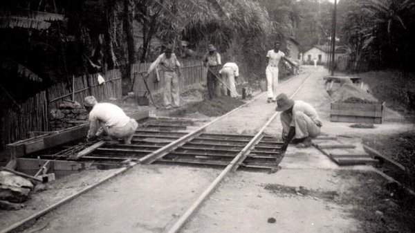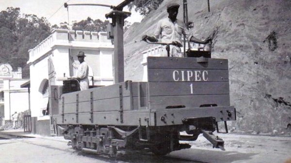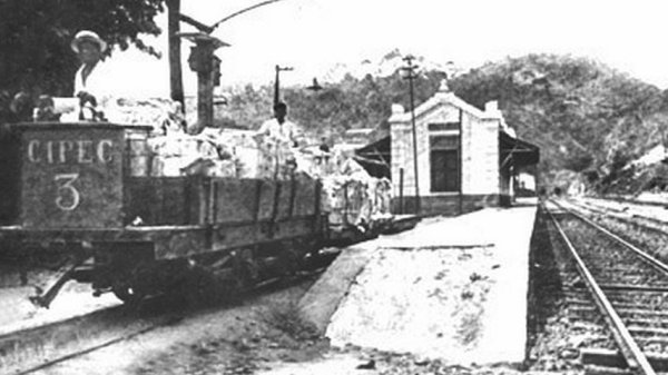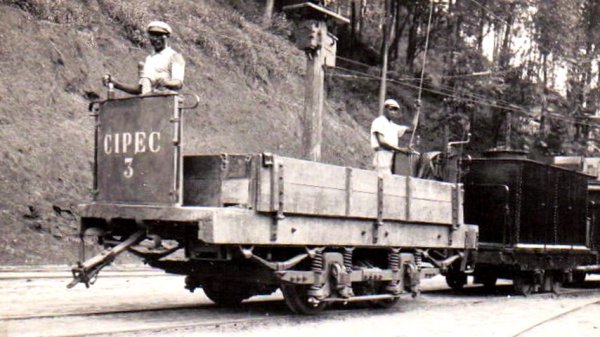 Fotos de vagões e de bondes da CIPEC na linha que levava à
