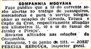 O Estado de S. Paulo, 1911; Mogiana: relatórios anuais) |