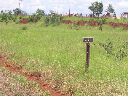 Placa de quilometragem na entrada sul do pátio, em 28/12/2005.