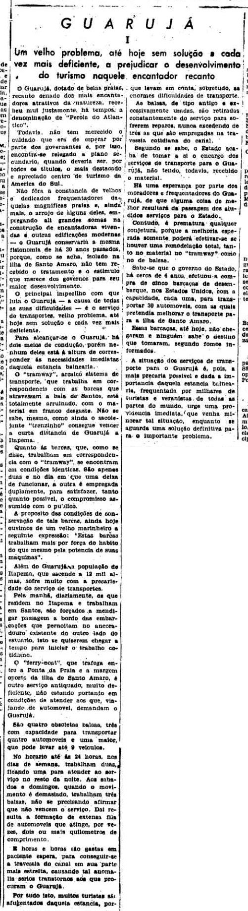 AO LADO: Chamada para a inauguração da nova estação ferroviaria do Guarujá e para o novo pontão das barcas em Santos (O Estado de S. Paulo, 20/12/1935). |