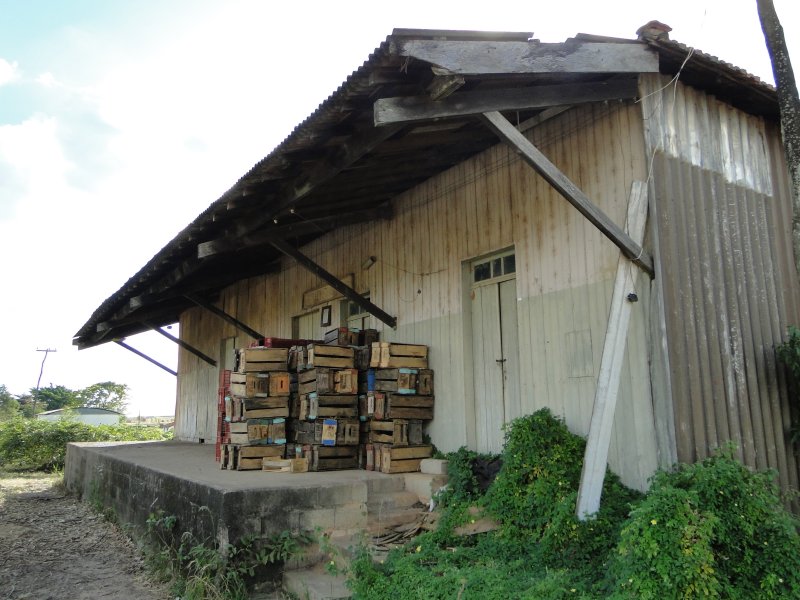 A estação ainda existe, feita em madeira, abandonada e sozinha no