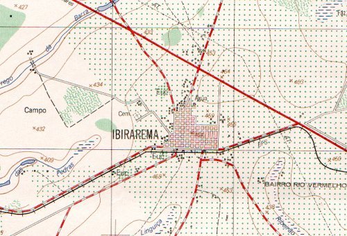 ACIMA: A Sorocabana em 1956, passando por Ibirarema - CLIQUE SOBRE A FIGURA PARA VÊ-LA MAIOR (IGG, 1956).