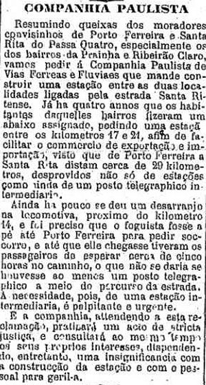 AO LADO: Uma nova estação para a linha (O Estado de S. Paulo: a de Ibó , 22/05/1895) |