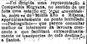 AO LADO: Aqui parecem estar se referindo à estação de Igaçaba e não da de Pedregulho (O Estado de S. Paulo, 2/11/1895). |