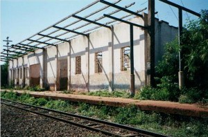 Lado da plataforma da ex-estação em ruínas