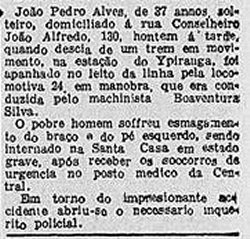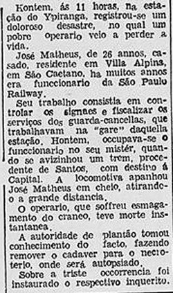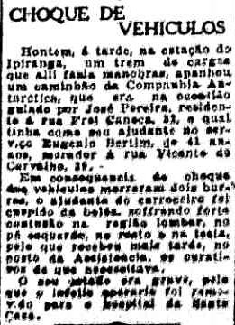 AO LADO: Acidente na estação (Correio de S. Paulo, 17/9/1936). |