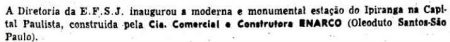 ACIMA: A atual estação do Ipiranga foi aberta em 23/9/1959 - CLIQUE SOBRE O TEXTO PARA VÊ-LO MAIOR (O Eatado de S. Paulo, 23/9/1959).