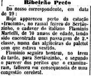 ABAIXO: Morte perto da estação de Iracema (O Estado de S. Paulo, 31/05/1900) |