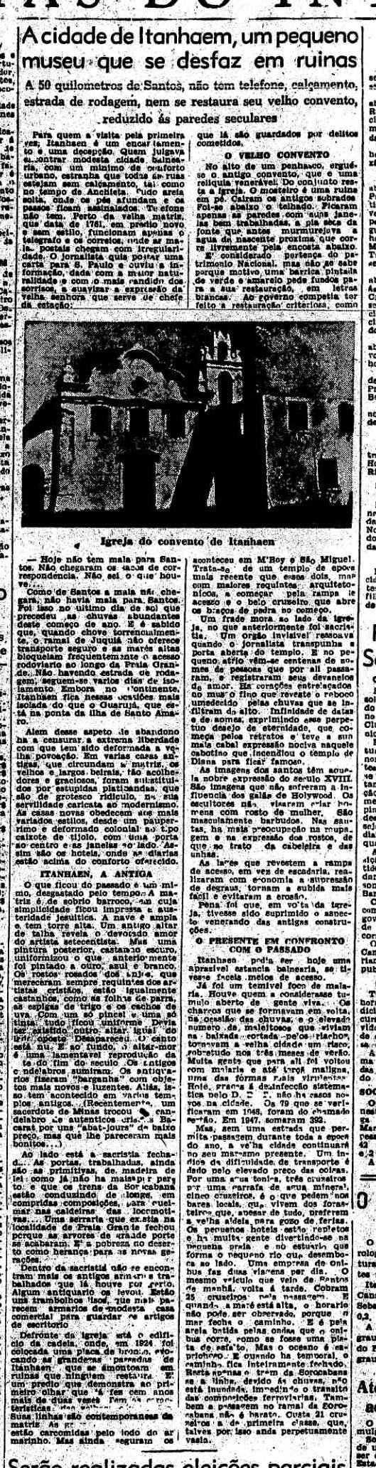ACIMA: Itanhaem em 1949 - CLIQUE SOBRE A FIGURA PARA LER A REPORTAGEM INTEIRA (O Estado de S. Paulo, 6/4/1949).
