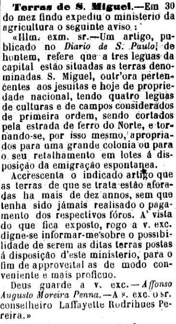 em Itaquera (O Estado de S. Paulo, 27/5/1922). |