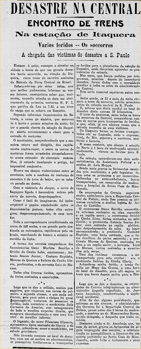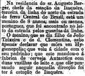 AO LADO: Menino pertido na estação de Itaquera. (O Estado de S. Paulo, 16/08/1897). |