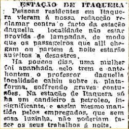 AO LADO: A iluminação na estação praticamente não existia (O Estado de S. Paulo, 20/4/1927) |