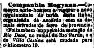 AO LADO: A Mogiana fecha a estação do Rio Doce, construída pela E. F. do Rio Pardo (A Provincia de
