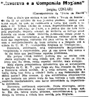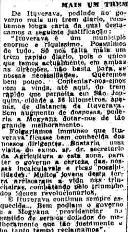 1931 - ACIMA: A cidade de Ituverava quer mais trens (O Estado de s. Paulo, 31/10/1931).