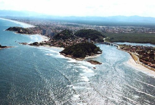 em 2005. À direita, o centro e a foz do rio Itanhaém. À