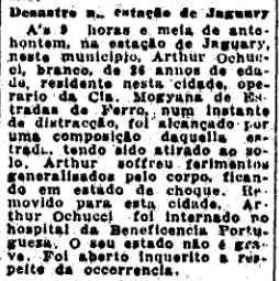 AO LADO: Atropelamento em Jaguary (O Estado de S. Paulo, 7/3/1933). |