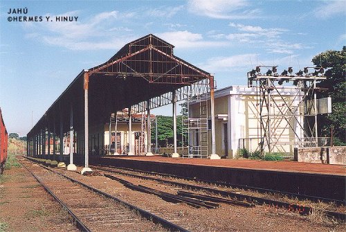 a linha nova retificada, substituindo a antiga estação de Jaú,