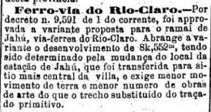 AO LADO: Outro anuncio para a abertura do ramal e estação de Jaú no dia 19 de fevereiro (A Provincia de