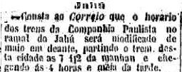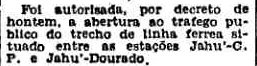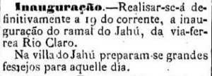 AO LADO: Anuncio para a abertura do ramal e estação de Jaú no dia 19 de fevereiro (A Provincia de