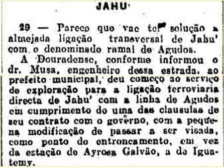 Jaú da Paulista com o ramal de Agudos. Jaú deixaria