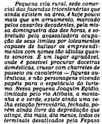 AO LADO: Joaquim Egidio em 1985 - ainda com a estação original, porém abandonada, demolida e finalmente reconstruida - CLIQUE SOBRE TEXTO PARA VER TODA A REPORTAGEM (O Estado de S. Paulo, 08/05/1985).. |