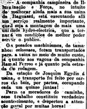 para linhas de bondes elétricos em Campinas. Em 17 de dezembro