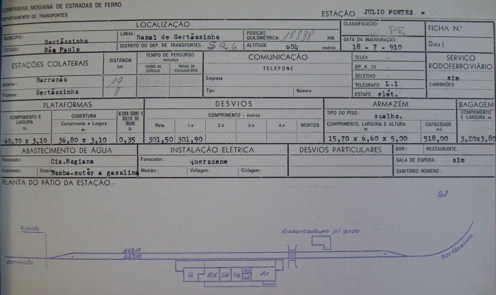 mercadorias e para serviços telegraphicos as estações de (...) Julio Pontes, no kilometro