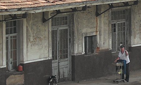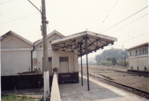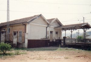 ACIMA: A casa de chaves, no pátio da estação, prgou fogo tambem em 7 de junho de 2020 (Foto Vanderley Zago, a foto é anterior ao incêndio, é dos anos 1990).