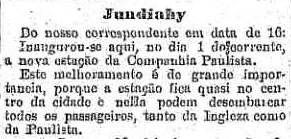 foi aberta uma estação em Jundiaí, pouco além da estação da