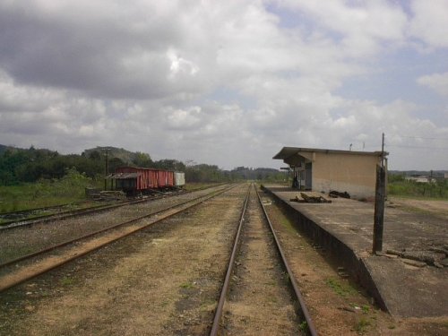os trens de carga que ainda estacionavam em seus desvios. Fica a uns
