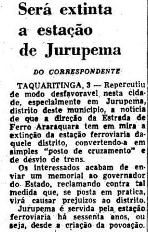 de Jurupema a partir de 15/6/1960 (O Estado de S. Paulo, 7/6/1960).