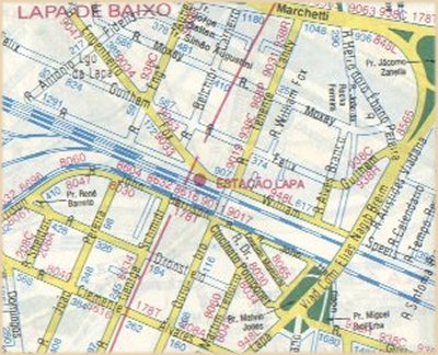 ACIMA: No centro do mapa, os desvios da Lapa,