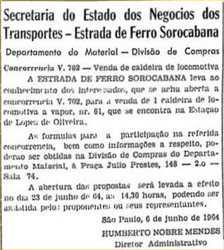 esperando ser vendida em 1964 (Folha de S. Paulo, 12/6/1964).