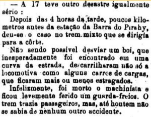 AO LADO: Poucos dias depois da inauguração da estação de Lorena, dá-se um desastre na linha da EFN próxima à estação (A Provincia de S.