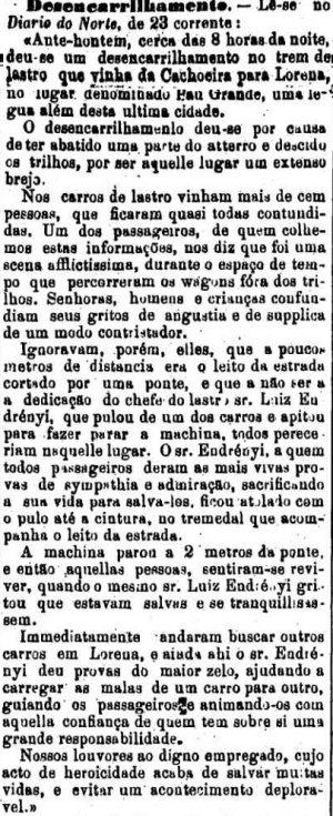 AO LADO: Outro acidente com o trem de lastro em Lorena e um herói que salvou vários da morte (A Provincia de S.