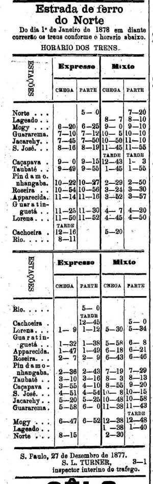 AO LADO: Horario de trens para Lorena e Cachoeira (A Provincia de S.