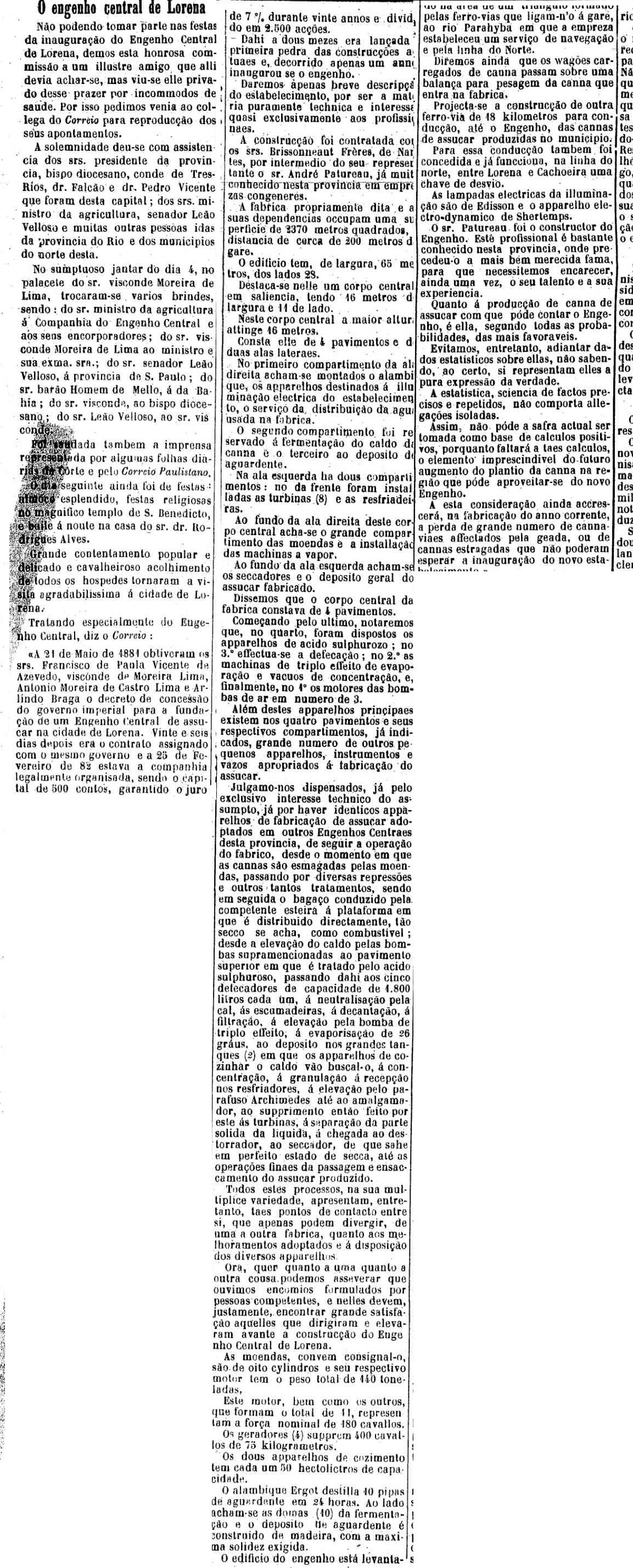 AO LADO: Inauguração do Engenho Central em Lorena em 4 de outubro - VEJA TODO O ARTIGO CLICANDO SOBRE A FOTO AO LADO (A Provincia de S.