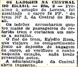 AO LADO: Assalto ao trem em Lorena (O Estado de S.