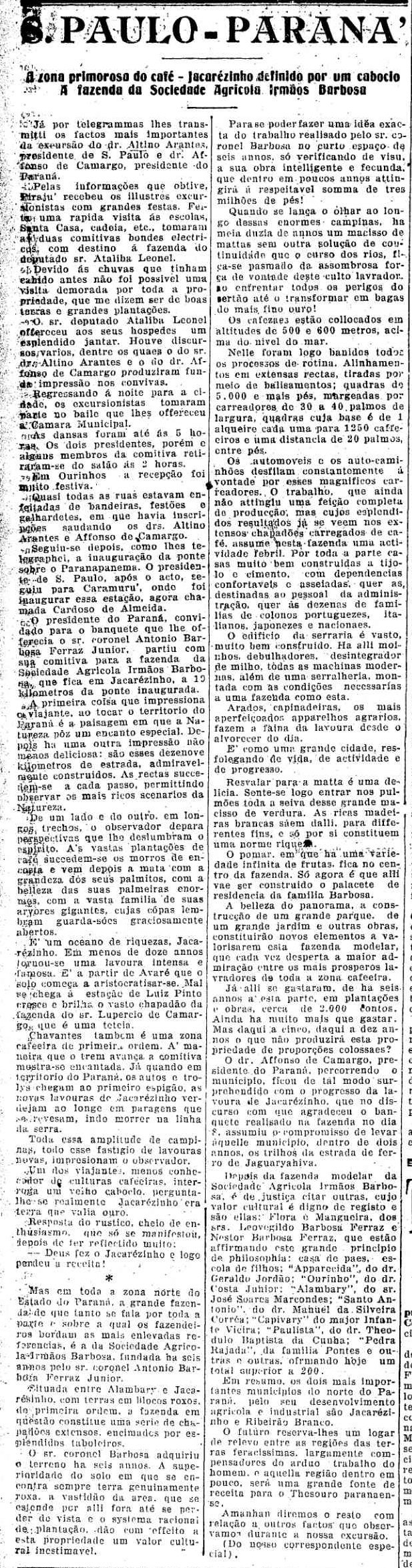 AO LADO: Apesar de ficar no Estado de S. Paulo, a estação de Luiz Pinto estava na fazenda Jacarezinho, que se estendia pelos dois estados (é o que entendi pelo relato anexo) - CLIQUE SOBRE O TEXTO PARA LER TODA A REPORTAGEM (O