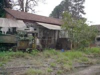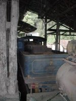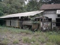 oficinas, abandonadas com suas locomotivas e prédios. Fotos