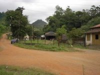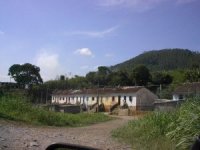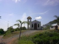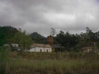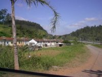 outro lado da via Anhanguera, com casas de colônia e igreja.