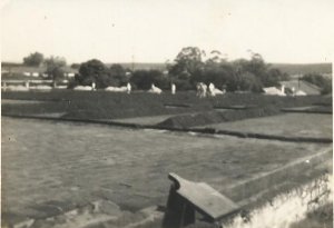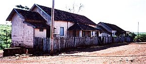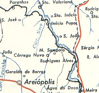 ![]() O mapa acima mostra a área noroeste do município de São Manuel, c. 1956. Na época, Areiópolis ainda fazia parte dele. Pasto Velho não aparece assinalado no mapa, mas fica junto à linha da Sorocabana, entre as estações de Paranhos e de Inácio Pupo, que aí podem ser vistas. ![]() ![]() Acima, fotos da colonia do Bom Retiro e do terreiro de café, ambos na fazenda, provavelmente anos 1960 (Acervo Carlos Alves). ![]() Acima, a linha do ramal de Bauru, ainda ativa, corta a fazenda (Foto Rodrigo Cabredo, 2002). Abaixo, a igreja da vila, em 2001 (Foto Adriano Martins) ![]() Clique sobre os nomes para saber sobre as estações ferroviárias de Paranhos e de Inácio Pupo |