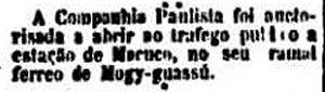 À ESQUERDA: Autorização para abrir a estação foi dada uma semana antes da abertura, que segundo a Paulista, foi em 25 de março? (O Estado de S. Paulo, 1/4/1903). |