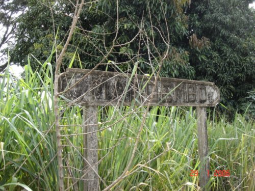 A placa da plataforma, no meio do mato, em 01/2006. Foto Willian