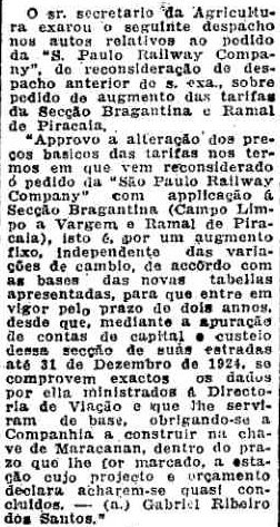 da estação (O Estado de S. Paulo, 27/3/1925).
