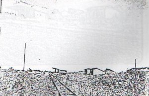 A estação, ao centro, e casas, em 1988. Foto da