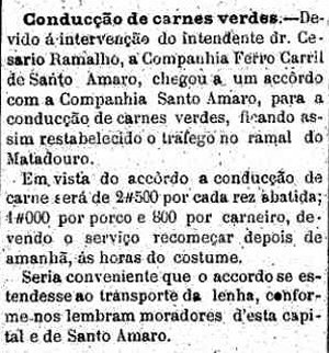 ACIMA: Inauguração do ramal do Matadouro em 1886 (A Provincia de S. Paulo, 28/11/1886).