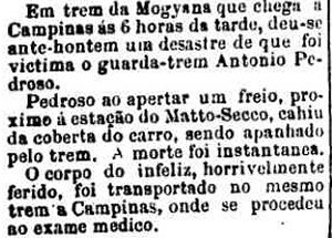 AO LADO: Morte na linha, próxima à estação (A Provincia de S. Paulo,