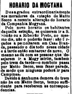 AO LADO: Passageiros em Mato Seco revoltados com nooo horario da Mogiana (A Provincia de S. Paulo,