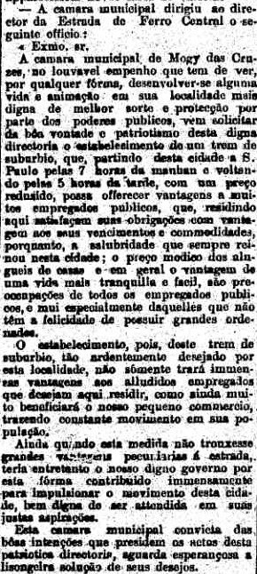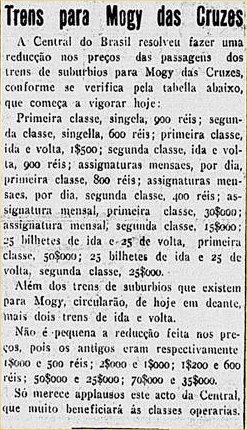 Nessa época, Mogi já era extremidade da linha de subúrbios da Central em São Paulo.